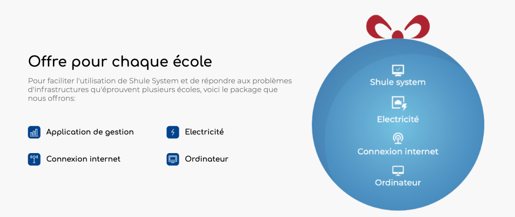 Aujourd’hui, Shule System offre bien plus qu’un simple outil de gestion : la plateforme inclut des fonctionnalités avancées d’analyse des données scolaires, ce qui permet aux écoles d’optimiser la performance des élèves. En seulement quelques années, le système a équipé 146 écoles de kits solaires, d’Internet et d’ordinateurs, leur permettant de tirer pleinement parti des bénéfices de la digitalisation.